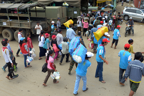 Một nhóm lao động người Campuchia rời Thái Lan về nước ngày 20/6/2014. Ảnh: AFP |